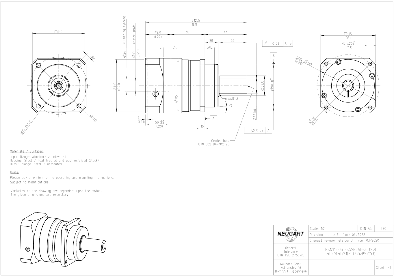NEUGART series PSN helical gear precision planetary gearbox adopts high-precision helical gear. This gearbox can realize synchronous operation with low noise. The gear meshing precision of this gearbox is high, and the return clearance is 1-5arcmin. Need to be less than 1arcmin. When the PSN gearbox is working, the vibration is reduced under the condition of high bearing load, which can improve the machining quality of the surface workpiece. The whole series of PSN gearbox drawings, CAD drawings, 3D models and other drawings can be downloaded online, providing the required data parameters, dynamic data and load diagrams when the whole system is in motion.