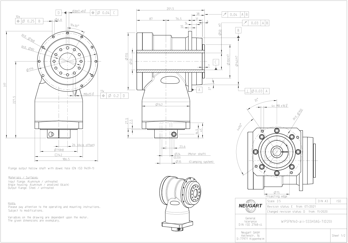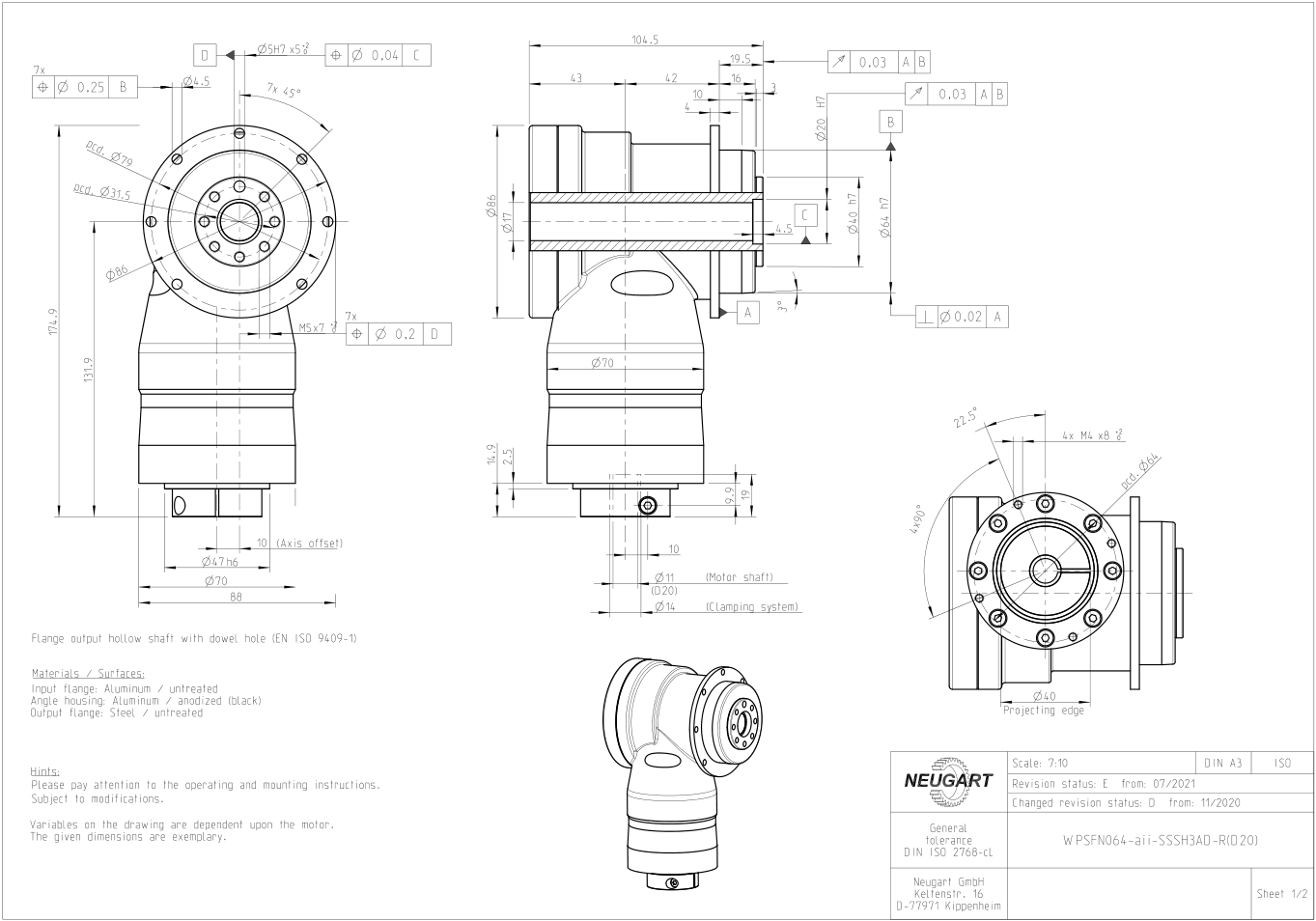 WPSFN is a NEUGART geared right-angle planetary gearbox with flanged output shaft and hollow shaft, which can be easily and quickly integrated into the system thanks to the standardized flange interface. The quality of the machined surface is achieved by optimizing the synchronizing function through the hypoid and helical planetary system. Download the drawings of the angular disc output planetary gearbox, download the model drawings of the full series of gearboxs, and download the drawings of the gearbox with different sizes and speed ratios.
