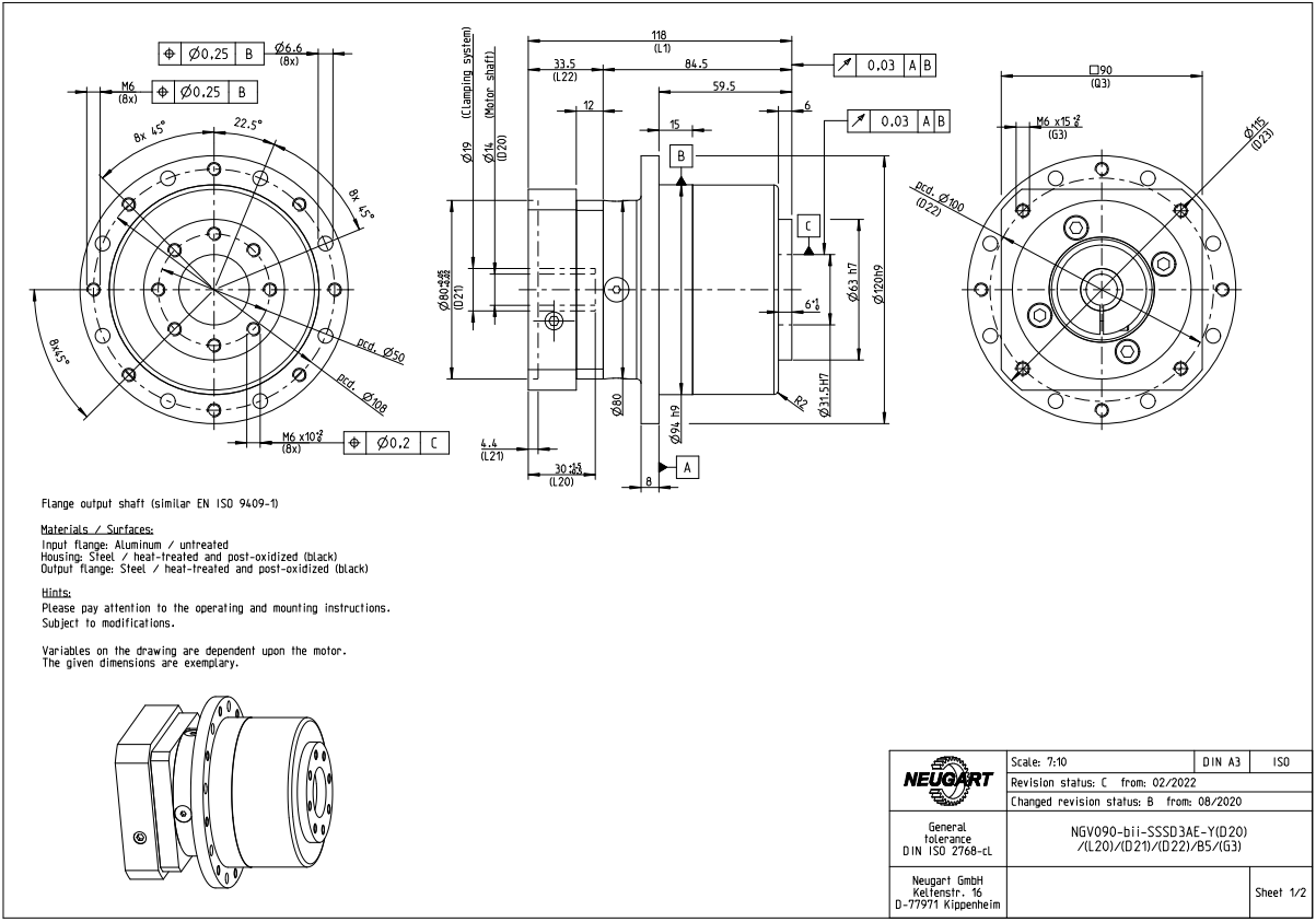 NGV planetary gearbox is a gearbox designed by NEUGART for industrial ground transportation vehicles. This gearbox has a compact structure and strong bearing capacity, and is suitable for high radial loads. AGV automatic guided vehicles have high requirements for radial load, space utilization and uninterrupted operation throughout the day. On this basis, the design concept of the special output bearing adopted by our NGV planetary gearbox can be directly installed on the chassis of the vehicle, so it may well meet these needs. This NGV planetary gearbox is used in industries such as ground transport vehicles, unmanned trucks, logistics trucks and robot handling. Professional technology provides selection and drawings. The following are the standard model size drawings of NGV gearboxs, which are only for selection reference!